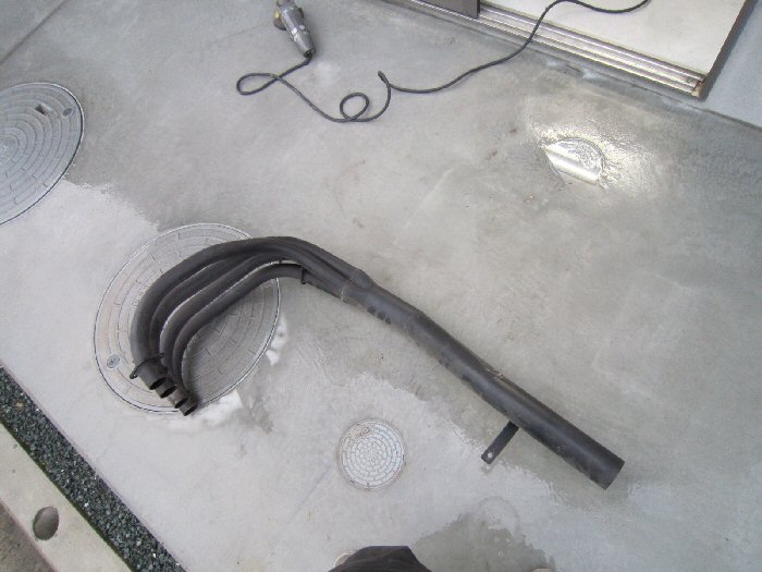 全体に低くたれていたマフラーをエンジンに近づける作戦です!