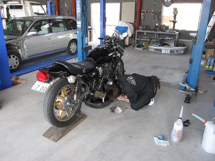 そして予約済みの管理人さんのエンジンオイル交換をする