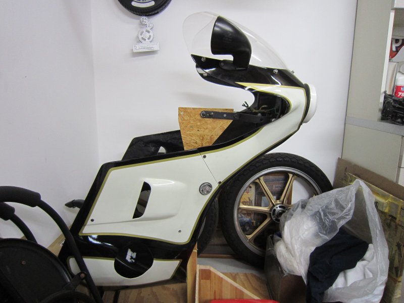 車検の準備で外したフルカウル置きを作ってました(笑)