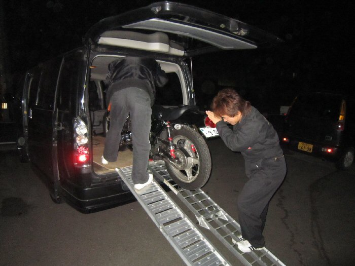 しかしこの2人… 普段バイクなんか載せないので慣れていないwww